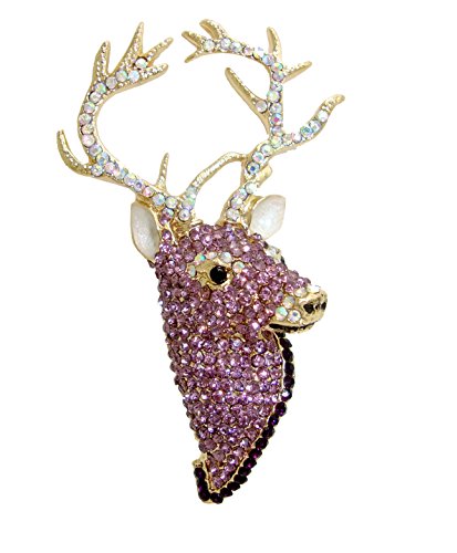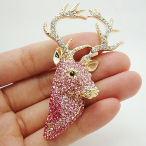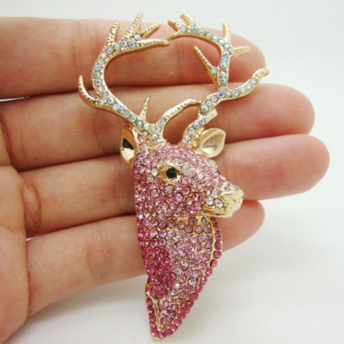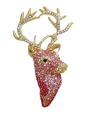 TTjewelry Fashion Animal Stag Deer Brooch Pin Austrian Crystal Christmas Gift (Pink)