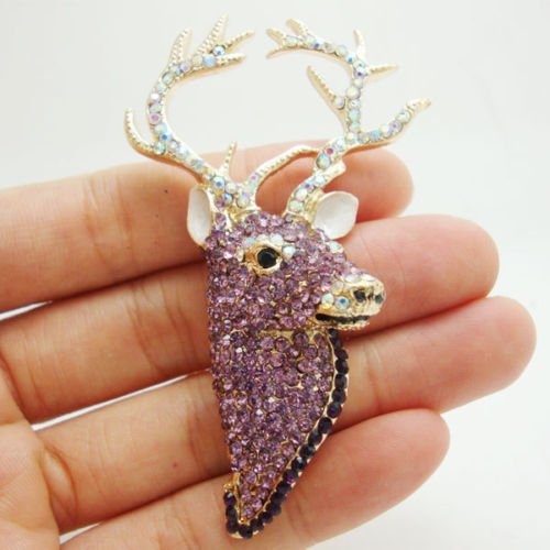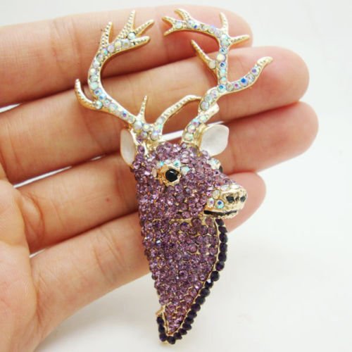 TTjewelry Christmas Deer Vintage Purple Austrian Crystal Stag Animal Brooch Pin