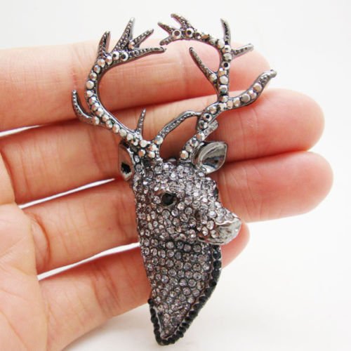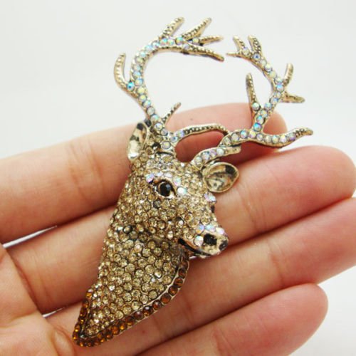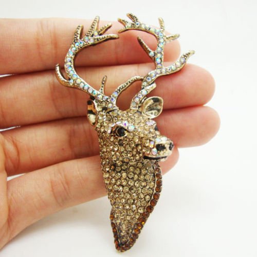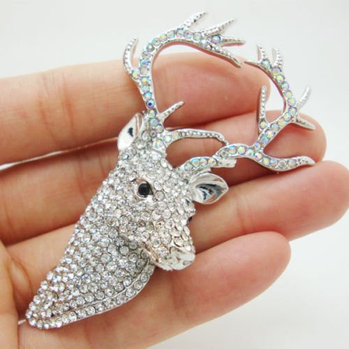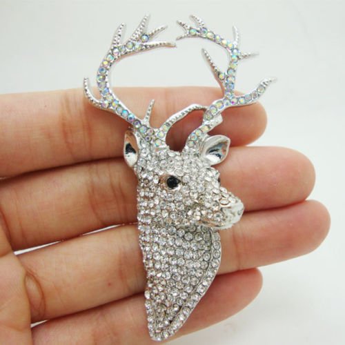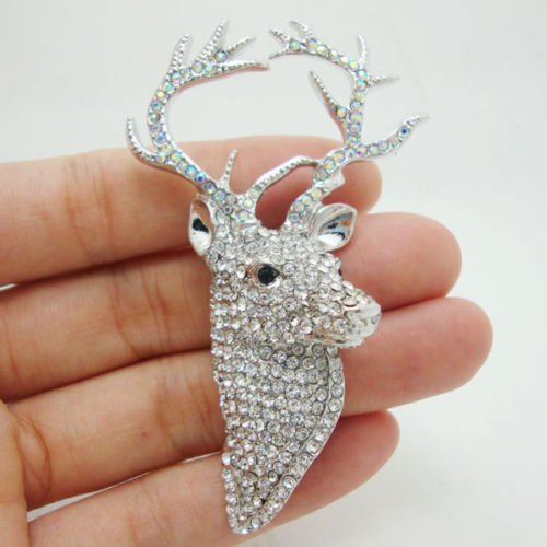 TTjewelry Fashion Animal Stag Deer Brooch Clear Austrian Crystal Christmas Gift