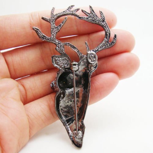 TTjewelry Fashion Animal Stag Deer Brooch Pin Austrian Crystal Christmas Gift (Black)