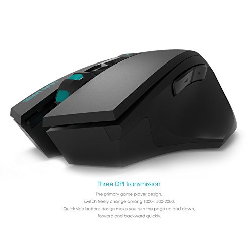-. Feature : IMPORTANT NOTE: Batteries are NOT included and they are to be purchased separately. Please make sure to insert the battery in the right "+" and "-" position and also ensure that the betteries are new.The USB receiver is inserted in the back of the mouse.Compatible with Windows 2000/XP/Vista/ Windows 7/ Windows 8/windows10/MAC; No driver needed, plug and play. 3 adjustable DPI levels (2000/1500/1000) / 2.4GHz Wireless:2.4GHZ wireless technology can provide a reliable connection,working distance can up to 15M. 2.4G will offer you a more comfortable, convenient and exact effect than the traditional FM radio wireless mouse / Energy Efficient: The smart automatic sleep mode help save the power five times more than the ordinary wireless mouse ,and extends battery life that it can auto power off when not in use / 3 adjustable DPI: DPI button to select your preferred cursor speed among 1000/1500/2000. Pre-programmed page up, page down button, scroll wheel,left /right button provide you a convenient web browsing/gaming experience / Plug-and-play: No driver required,just insert wireless USB receiver into your computer's USB port.Compatible with Windows 2000/XP/Vista/ Windows 7/ Windows 8/windows10/MAC