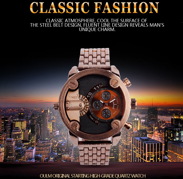 Jam tangan Oulm 3130 hadir dengan design interface jam yang sangat unik.Jam tangan Oulm 3130 menggunakan modul analog Quartz yang dapat menampikan waktu dengan tingkat keakuratan tinggi. Body jam terbuat dari material stainless steel sehingga tidak mudah berkarat saat terkena air seperti keringat tangan. Bagian tali jam tangan Oulm terbuat dari material stainless steel yang kokoh dan tidak mudah putus, tahan untuk penggunaan dalam jangka waktu yang lama. Interface jam memiliki design stereoscopic yang unik, dilengkapi juga dengan baut yang menghiasi bagian luar jam sehingga menimbulkan kesan tangguh.Jam tangan Oulm hadir dengan berbagai macam warna menarik. Anda dapat memilih pilihan warna sesuai dengan selera Anda !