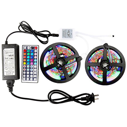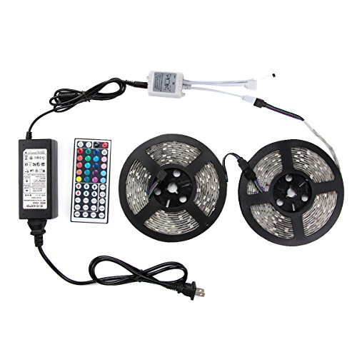 WenTop Led Strip Light Kit Non-waterproof SMD 3528 32.8Ft(10M) 600leds Flat Led Tape Lighting with DC12v Power Supply and 44K Remote Controller for Closet, Bedroom, Fixtures Ceiling Mount - RGB Only