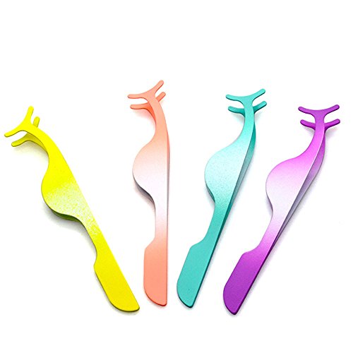 Adecco LLC Pack of 4 Stainless Steel False Eyelashes Extension Applicator Tool Tail Clip Auxiliary Clip Tweezers Nipper Tool