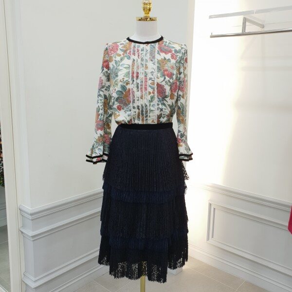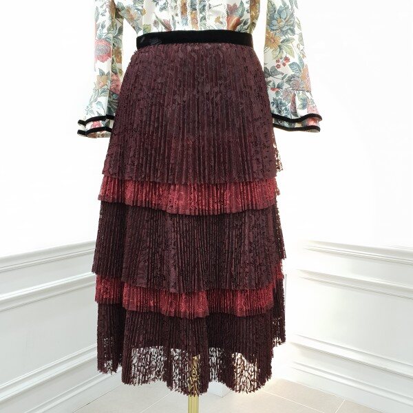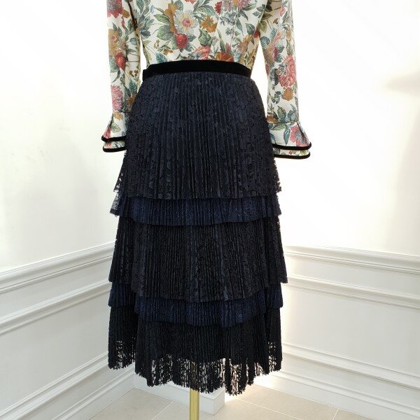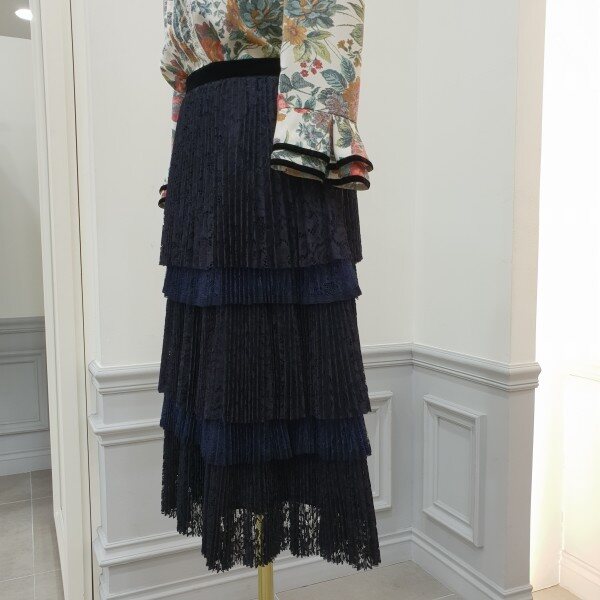 주름을잡아 A라인실루엣으로퍼지는레이스스커트입니다~허리는 벨벳테이프로 따뜻해보이는 느낌을줍니다~♡♡총장 70CM