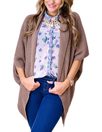 Eshion Women's Batwing Sleeve Open Front Knitted Long Cardigan Sweater Coat
