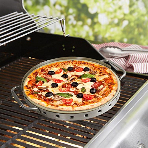 Man Law BBQ Products MAN-PS2 Series Ceramic Pizza Stone with Stainless Steel Frame, One Size, Stainless Steel and Tan