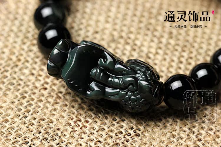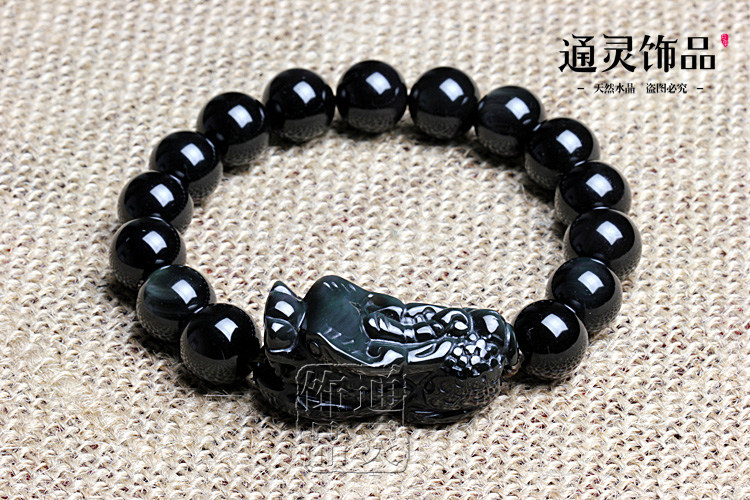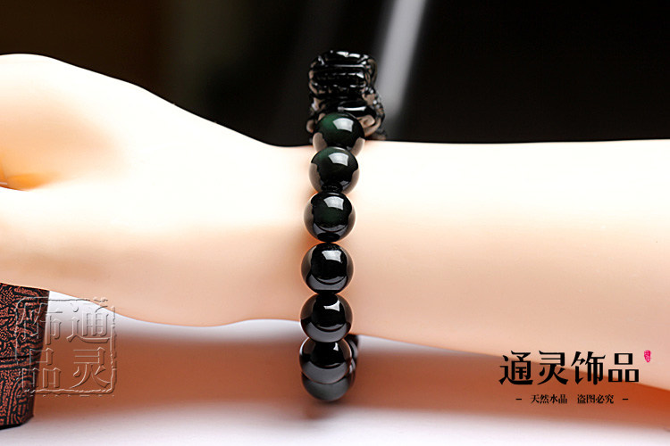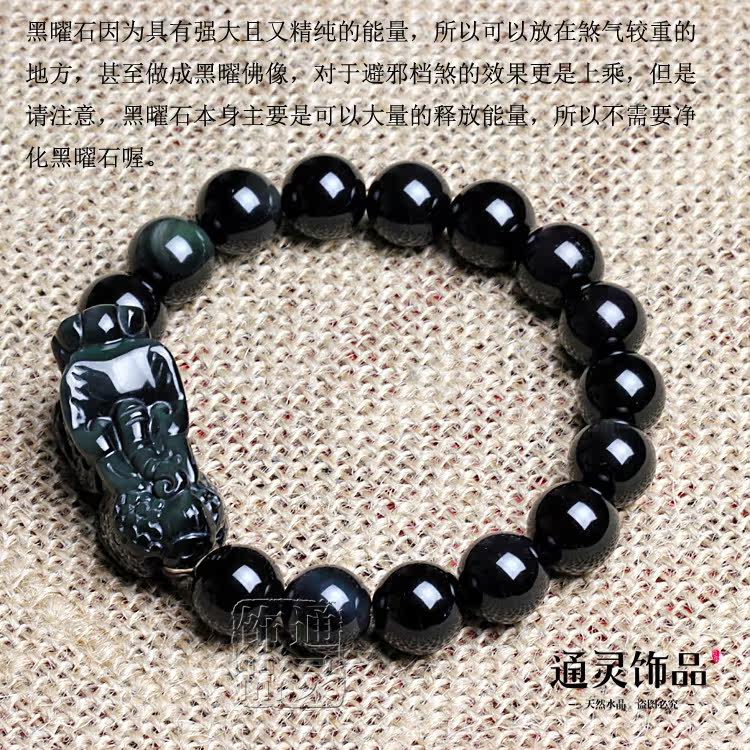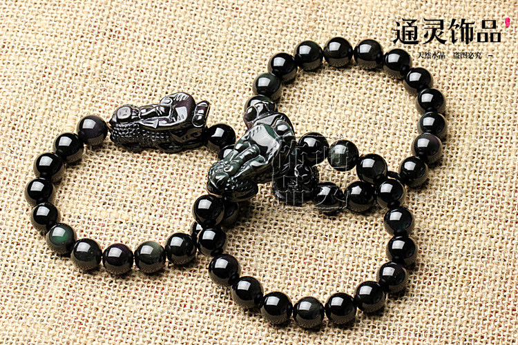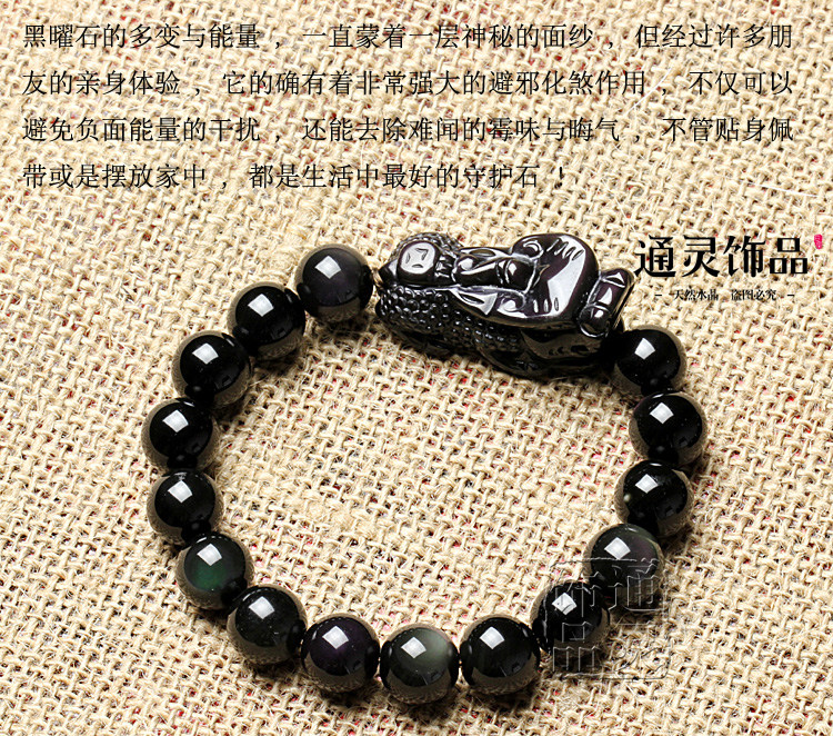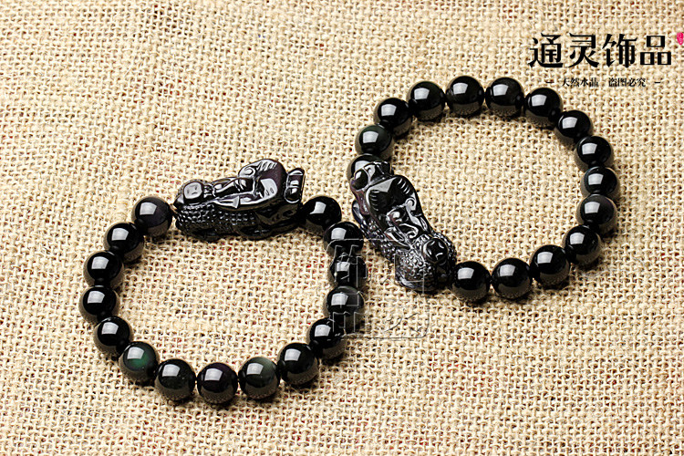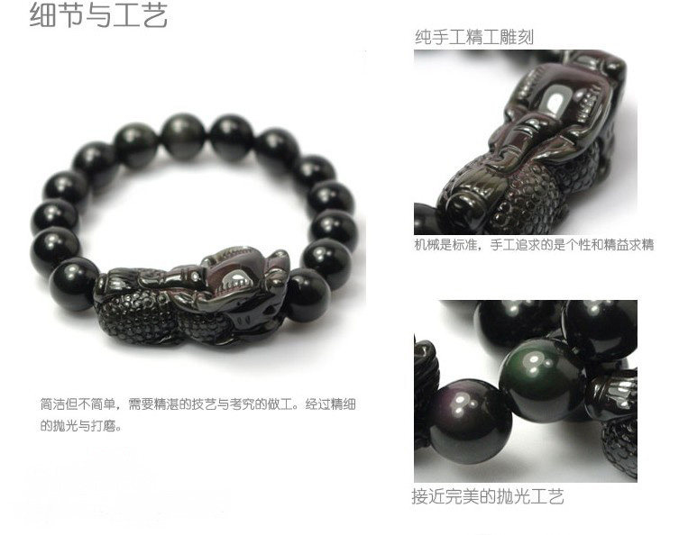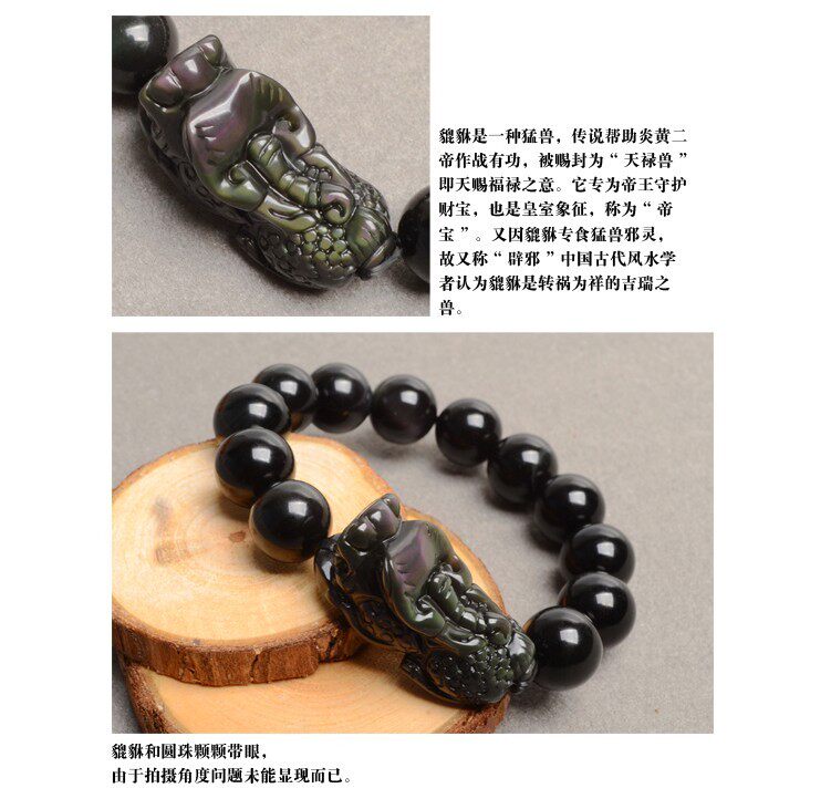 天然彩虹眼黑曜石貔貅手链手串 招财转运辟邪 男女款水晶饰品