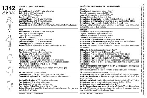 -. Title : Simplicity Creative Patterns 1342 17-Inch Stuffed Dolls and 9-Inch Stuffed Animals Sewing Patterns, One Size