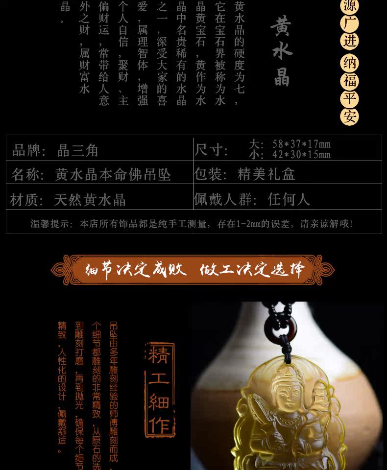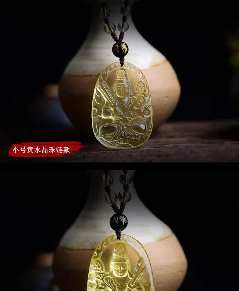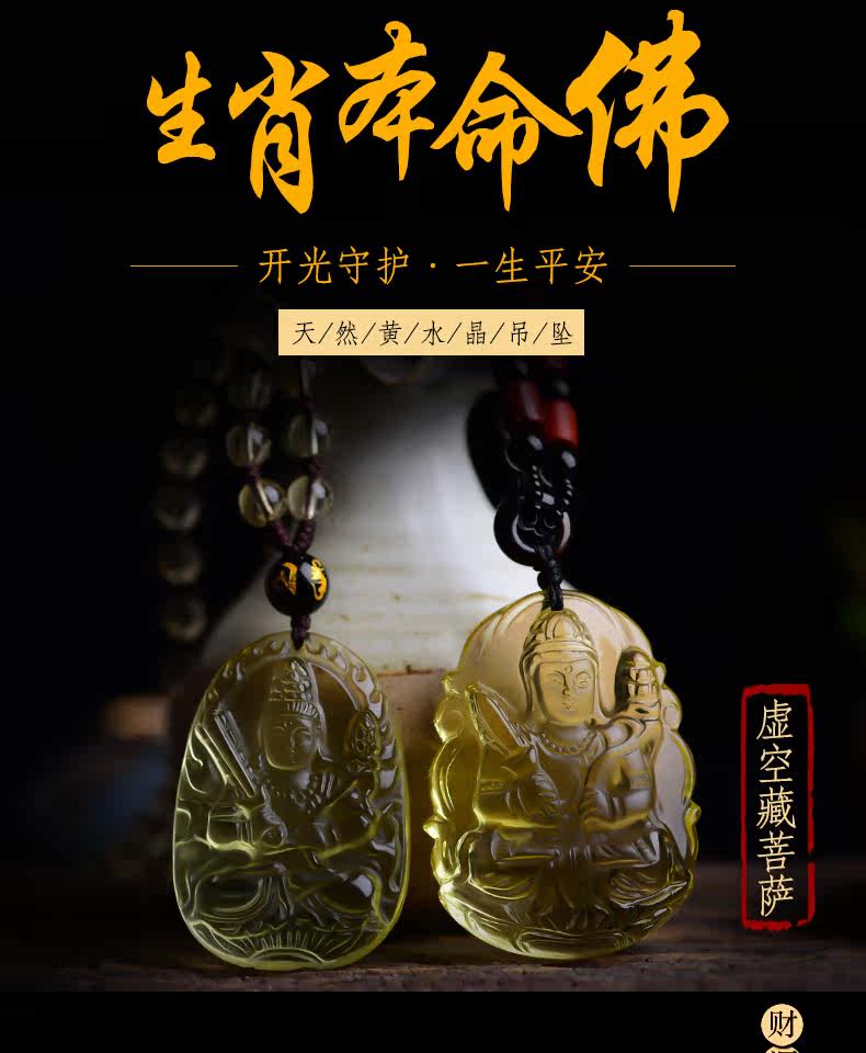 开光天然黄水晶虚空藏菩萨本命佛吊坠 生肖属牛虎男女守护神项链