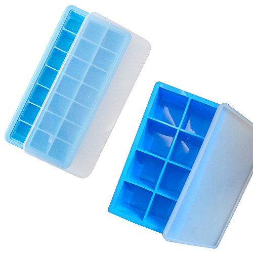 -. Title : ベイカーDepot Ice Makerシリコン金型氷のアイスキューブトレイ8キャビティSquare Kingサイズwithシリコン蓋、21キャビティSquare withプラスチック蓋、2のセットブルー色