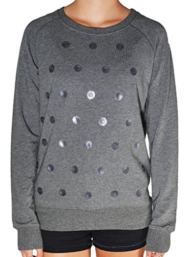 Kersh Ladies' Long Sleeve Embellished Top-charcoal Dot Pattern