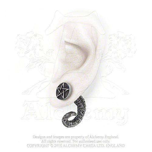 -. Binding : Jewelry -. Brand : Alchemy of England -. Department : mens -. EAN : 0664427041208 -. Feature : authentic Alchemy Gothic design / sold SINGLY / made of fine lead-free English pewter / rams horn and pentagram earring -. Label : Alchemy of England -. Manufacturer : Alchemy of England -. Model : E356 -. MPN : E356 -. PartNumber : E356 -. ProductGroup : Jewelry -. ProductTypeName : FASHIONEARRING -. Publisher : Alchemy of England -. Studio : Alchemy of England -. Title : Magic Ram's Horn Faux Ear Stretcher Earring by Alchemy Gothic -. UPC : 664427041208