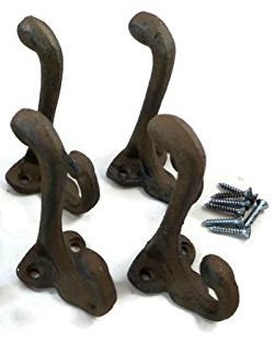 Rustic Cast Iron Coat Hat Wall Hooks School Farm Tack Closet Set of 4