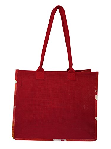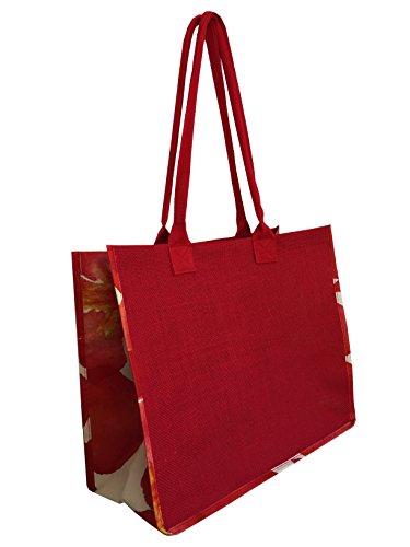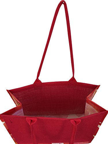 Earthwise Large Cotton Jute Summer Beach Reusable Shopping Tote Grocery Bag ( 2 Pack) (Red)