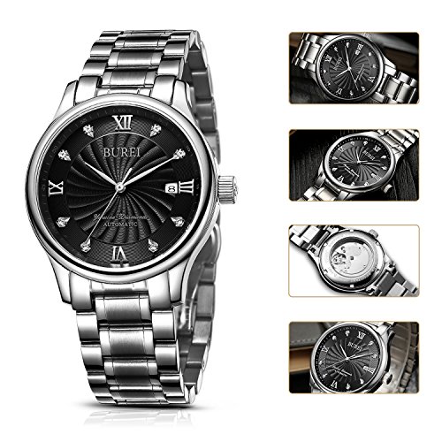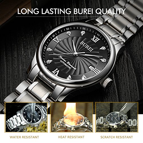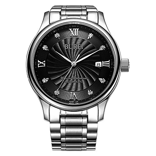 BUREI(《바오쇼》) (바오쇼)BUREI 손목시계 맨즈 멋쟁이 기계식 방수 날짜 시계 스테인레스 크로노그래프 블랙 나선무늬의 문자판