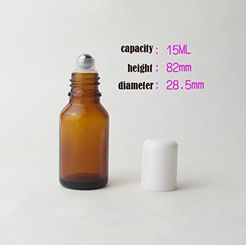 3PCS 15ml Upscale Empty Refillable Brown Glass Roll on Bottles Essential Oil Perfume Roller Bottles Vial Attar Bottle Container Pot Jar with White Cap and Mental Roller Ball (15ml)