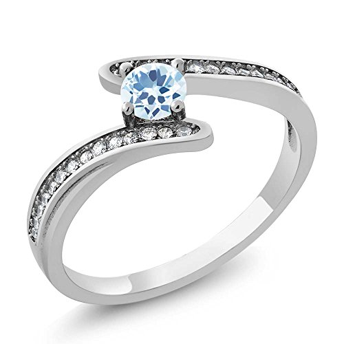 -. Title : 0.76 Ct Round Sky Blue Topaz Platinum Plated 925 Sterling Silver Bypass Ring (Available in size 5, 6, 7, 8, 9)