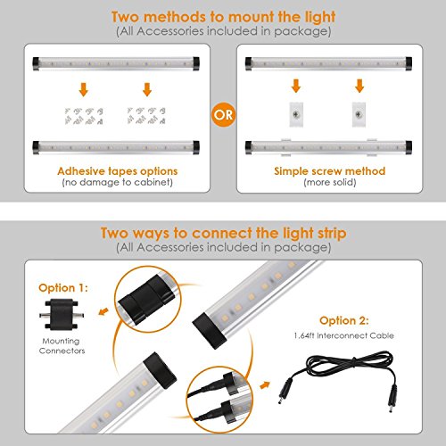 Energy saving (4W per Strip):Low heat, environmentally friendly under counter lighting and Each 4w light strip can replace 24W fluorescent tube. PC cover makes the light softer for the eyes.