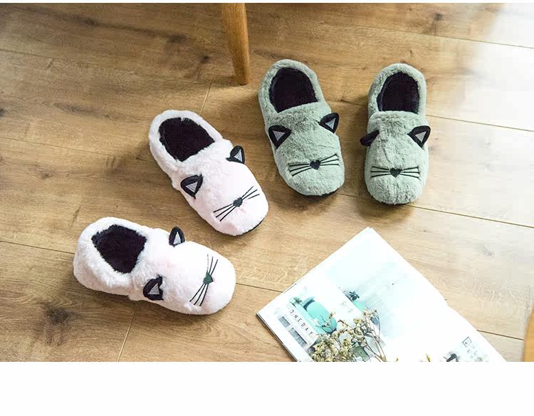 秋冬可爱卡通儿童月子毛绒家居情侣棉拖鞋男女室内亲子居家用厚底
