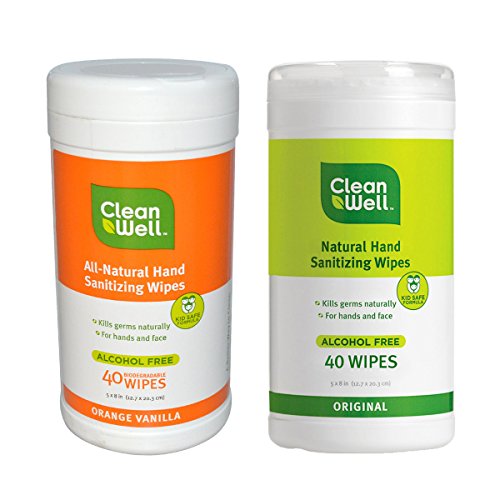Clean Well Orange Vanilla All-Natural Hand Sanitizing Wipes and Clean Well Original All-Natural Hand Sanitizing Wipes Bundle, Alcohol Free, 40 Wipes each, 5...