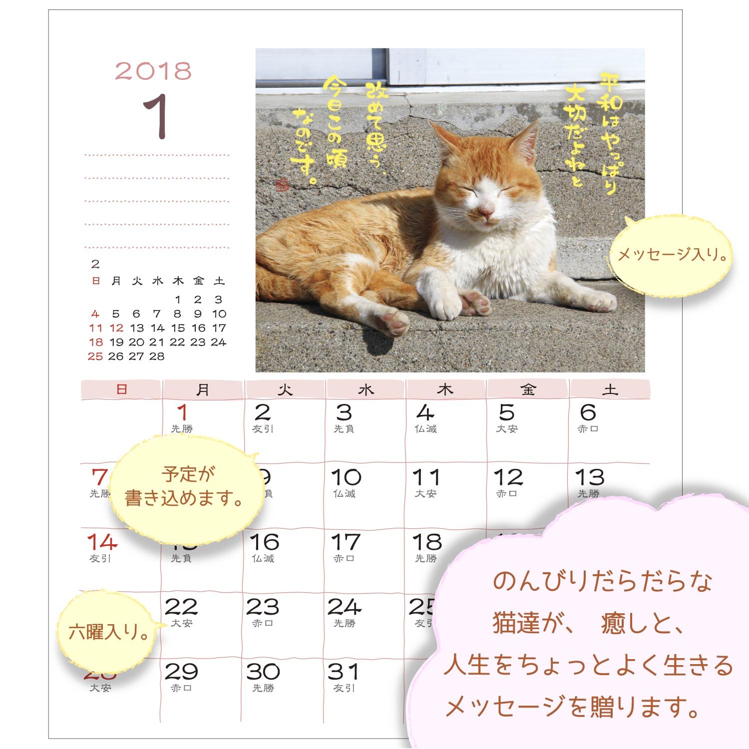 It is a compact desktop calendar that you can enjoy plenty of cute pictures of cats.