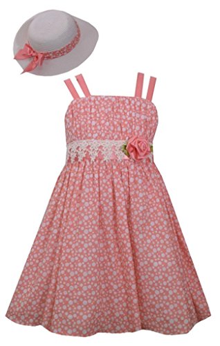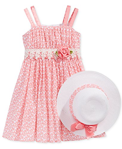 -. Binding : Apparel -. Brand : Bonnie Jean -. Color : Pink -. Department : baby-girls -. Feature : Bonnie Jean / Sleeveless dress and hat / Polka dot P.R.Int dress with lace and flower accent / Coral and white colors / Machine washable; cold water and tumble dry low -. Model : 8915 -. ProductGroup : Apparel -. ProductTypeName : DRESS -. Title : Bonnie Jeans Girls Sleeveless Polka Dot Dress with Matching Hat