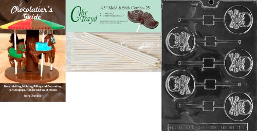 Cybrtrayd 'Skull and Crossbones Lolly' Halloween Chocolate Candy Mold with 25 4.5-Inch Lollipop Sticks and Chocolatier's Guide