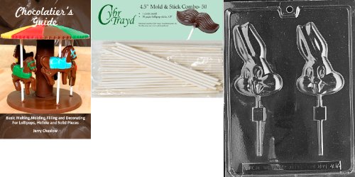 Cybrtrayd 45St50Bk-E407 'Big Tooth Bunny Lolly' Easter Chocolate Candy Mold with 50 4.5-Inch Lollipop Sticks and Chocolatier's Guide