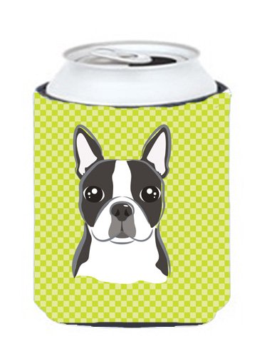 Lime Checkered Boston Terrier Can or Bottle Hugger BB1139CC