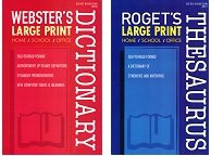 -. Feature : Includes Webster's Large Print Dictionary & Roget's Large Print Thesaurus / Roget's Thesaurus has 194 pages / Webster's Large Print Dictionary has 258 pages / Both items have easy to read print size / Items are approximately 5.25" X 8.25"