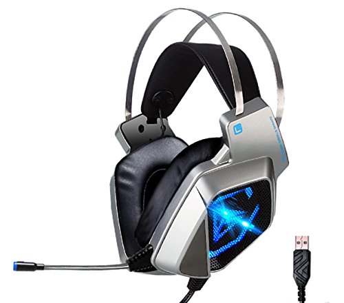 -. Feature : 【USB 7.1 Channel Surround Sound】Welcome to much more real game world with 360 Degree and 3D sound surround. More excellent, More Real / 【USB 3 in 1 Port】Microphone + Audio + LED Light = ONE USB PORT. No trouble for gaming on computer or notebook. / 【57MM Speaker Unit】Low Power, Low Distortion, Wide Frequency Response, Transient Response Good, High Sensitivity guarantee you amazing bass, excellent high and alto brings. / 【Exact Positioning for Microphone】Little smart in-line Remote Control for sound and Mic with LED light. / 【Comfortable Wearing】Double headset head beam will release uncomfortable for long time wearing.