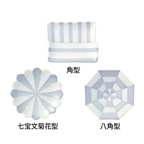 원본상품명: 有田? おてしょ皿3個セット マット ブル?B(七?文菊花型/角型/八角型) 10cm/9.5cm/10cm 北川美宣窯 kgb0323