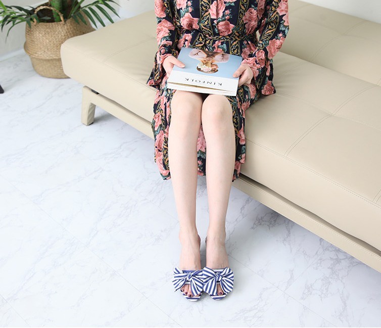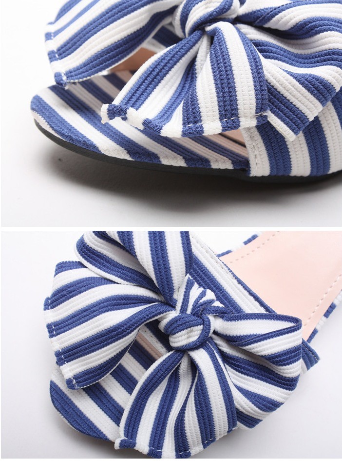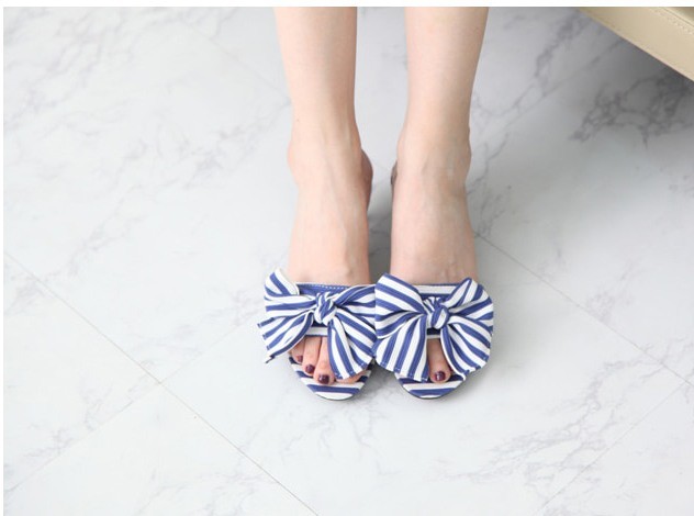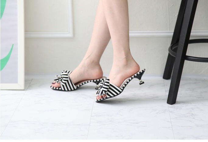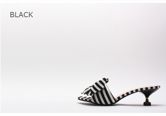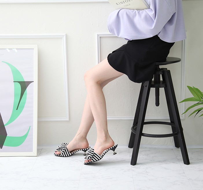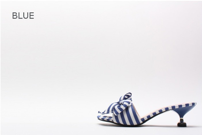 商品名:サンダル レディース ミュール ピンヒール ストライプ リボン 2018 春 ファッション 靴 婦人靴