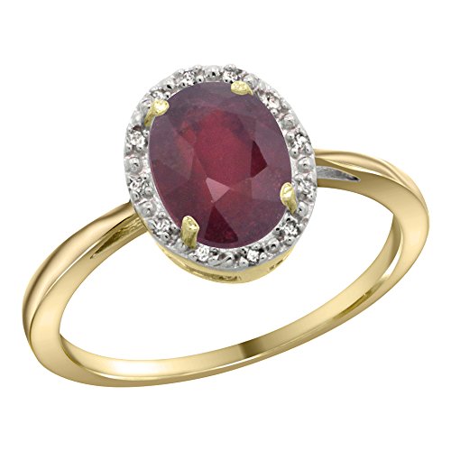-. Title : 14K Yellow Gold Natural Enhanced Ruby Diamond Halo Ring Oval 8X6mm, 1/2 inch wide, sizes 5-10