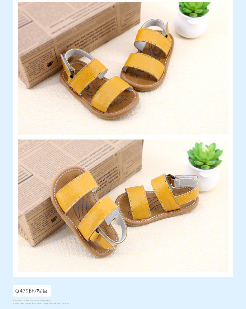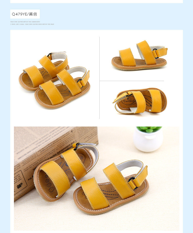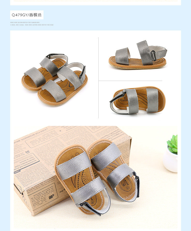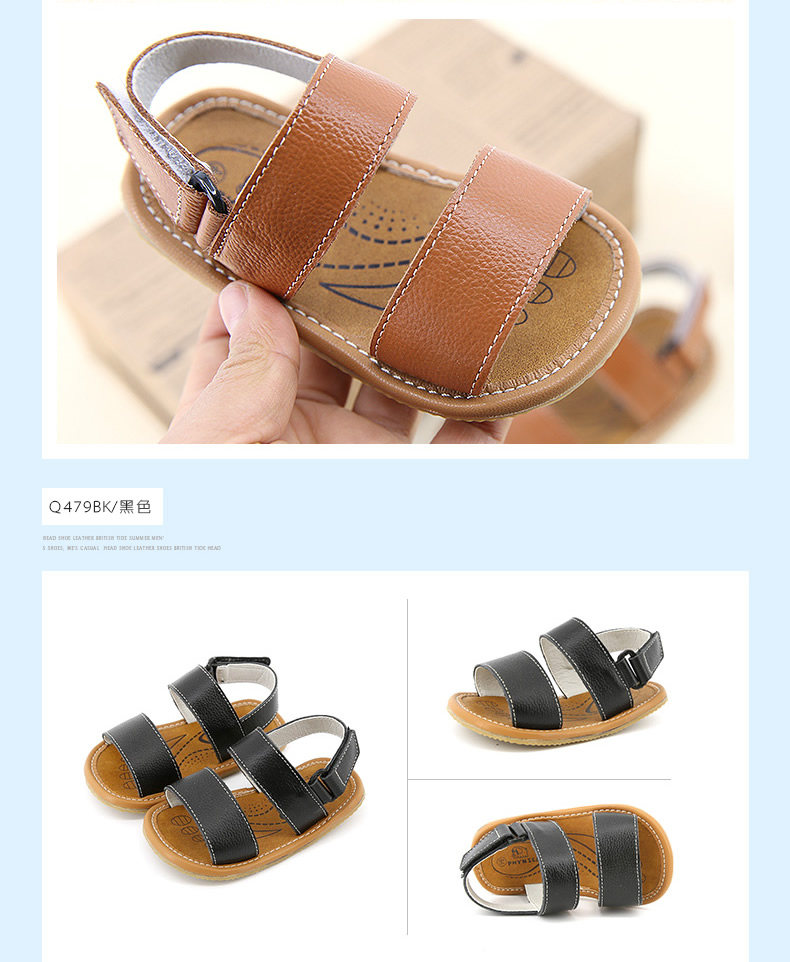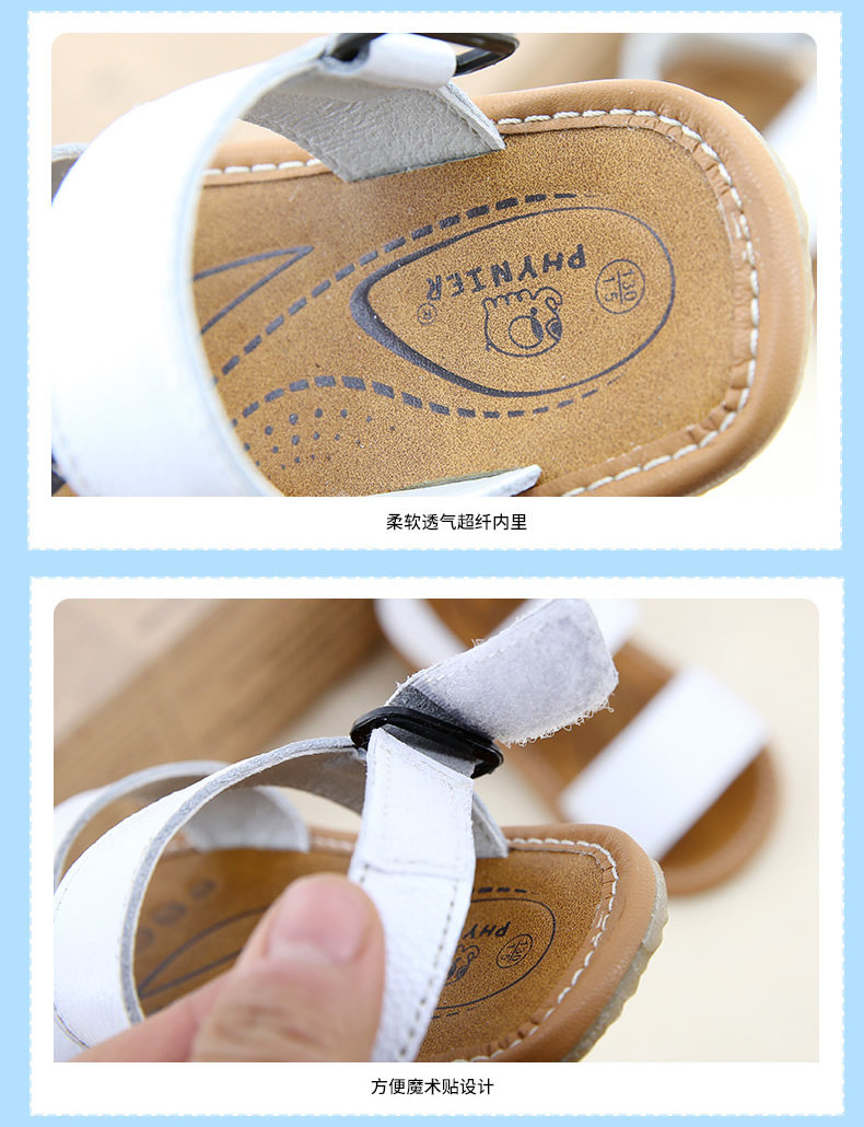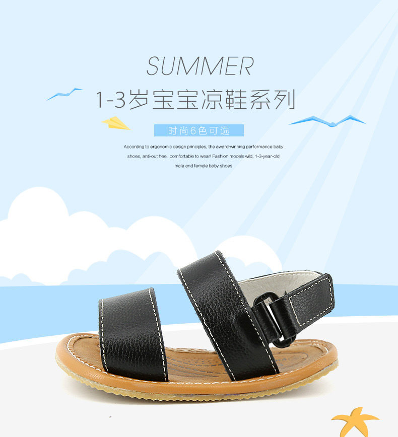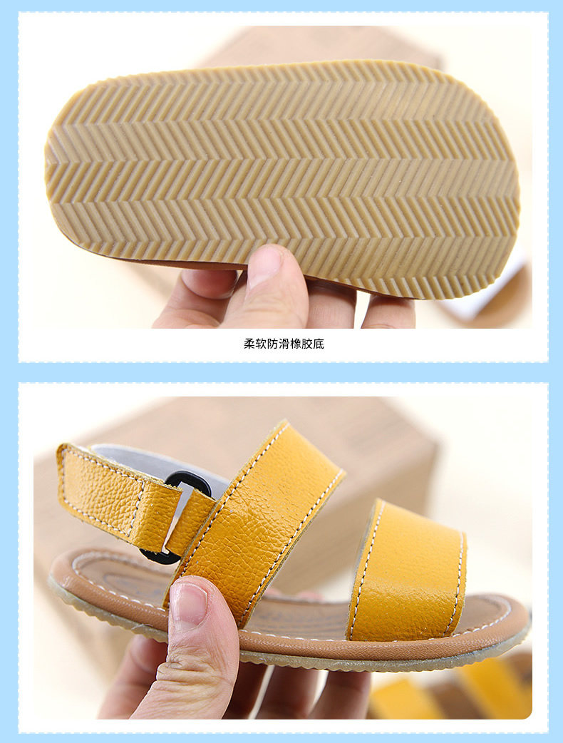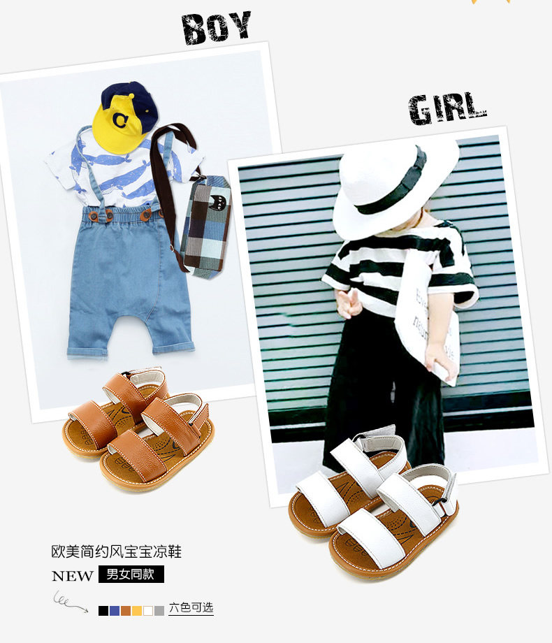 夏季新款男宝宝学步鞋女童凉鞋沙滩鞋软底一字牛皮鞋潮