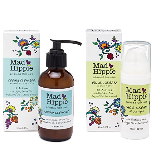 - This bundle includes one 4 fl. oz. bottle of Mad Hippie Facial Cream Cleanser & one 1.02 fl. oz. bottle of Anti-Wrinkle Peptide Face Cream with Squalene, Organic Macadamia, Sesame, Safflower, Argan Oils, and Green Tea Extract