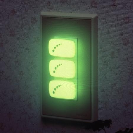 埋め込み式のスイッチのボタンに貼り付け、スイッチをおしゃれにカバーするスイッチかざりです。蓄光材使用で暗闇で光り、スイッチの場所がよくわかります。スイッチのボタンが押しやすくなります。 |