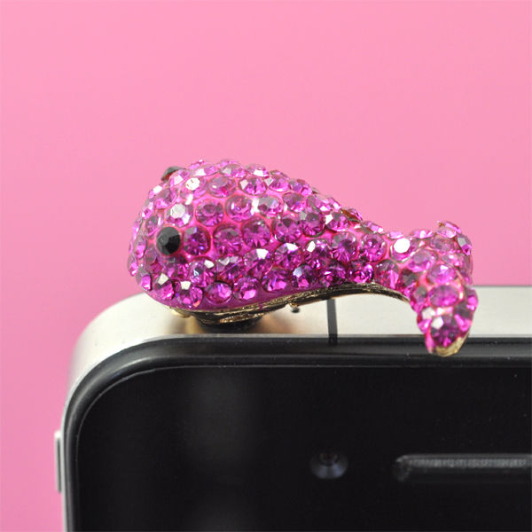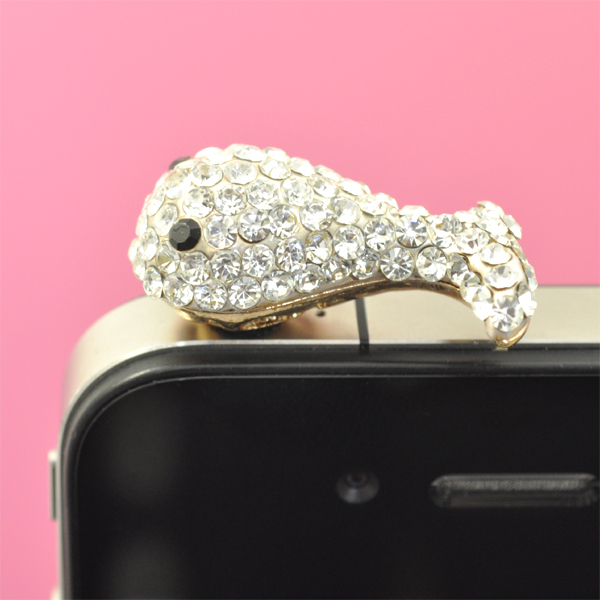 ラインスーンのついたくじら型スマートフォン用ピアス! シルバー、ピンクの2色展開。 イヤホンジャックに装着するだけでスマートフォンを簡単にドレスアップできます! | |