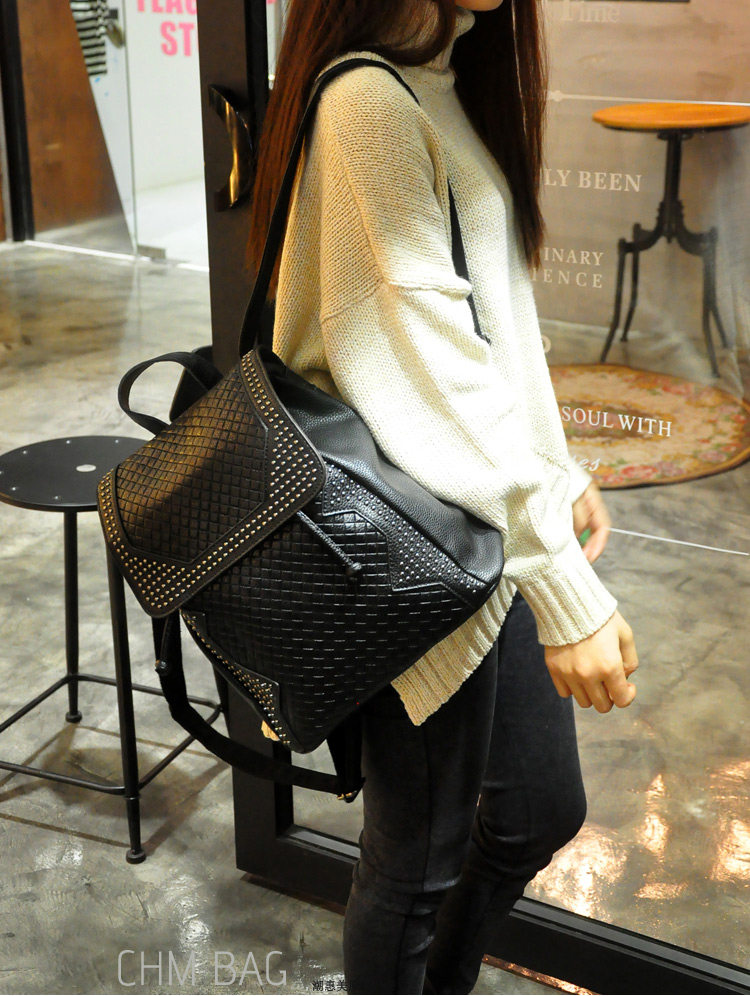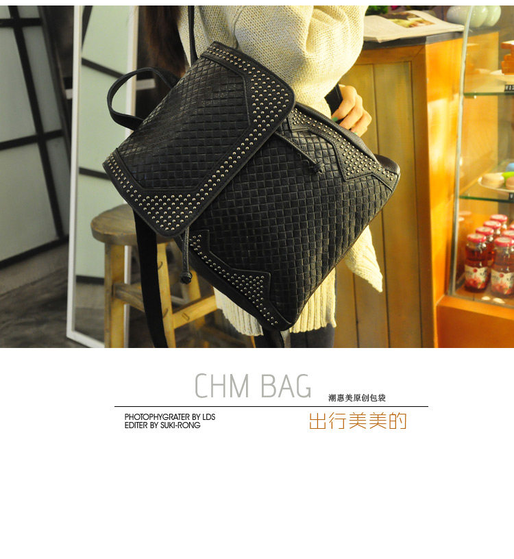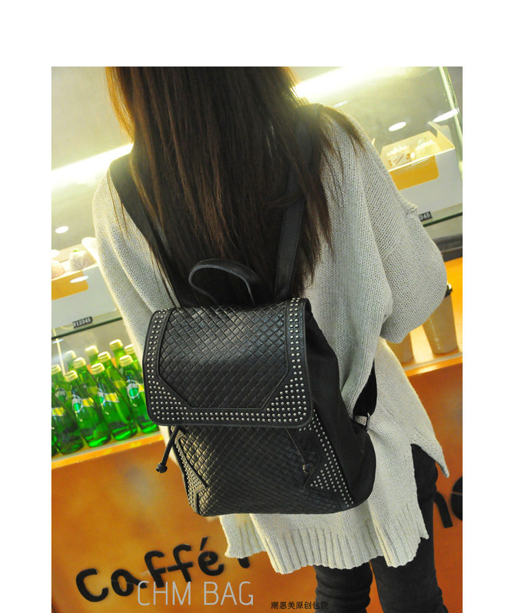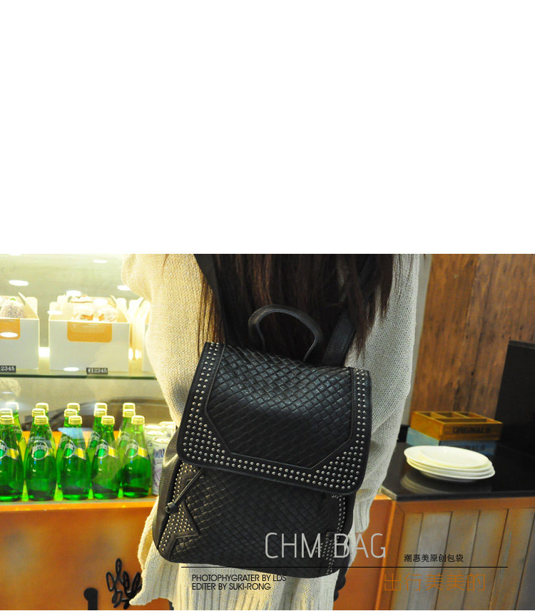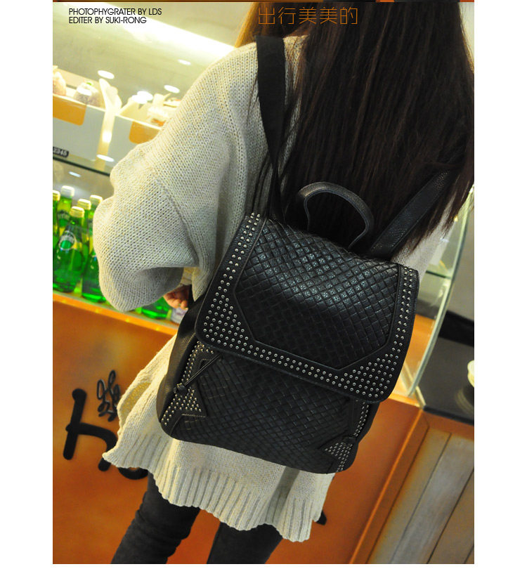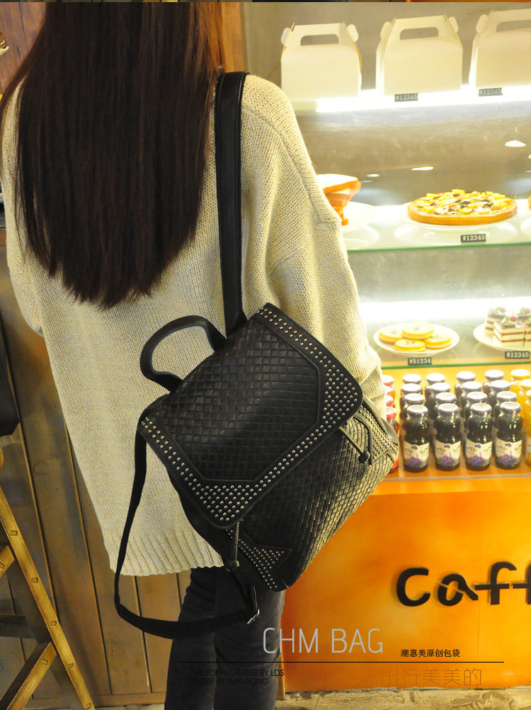 新款 韩版 真皮压花格纹铆钉双肩包 背包 潮包 出行旅游双肩包 女