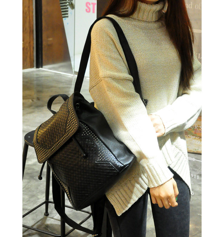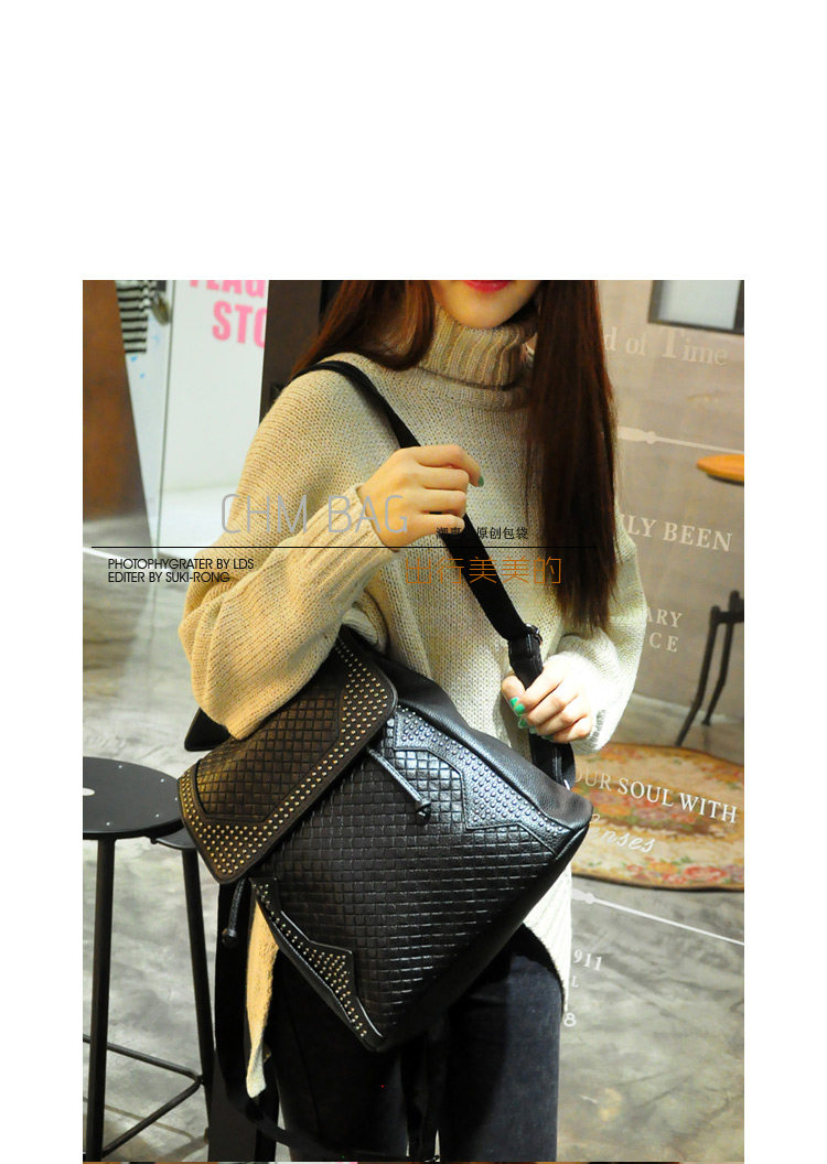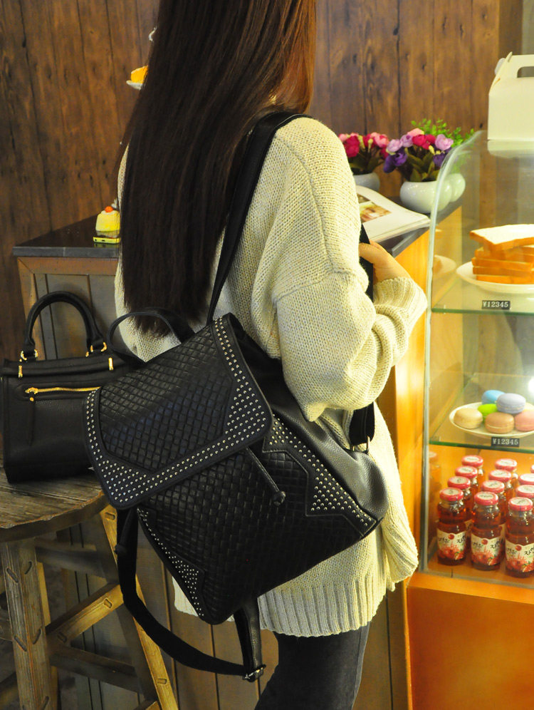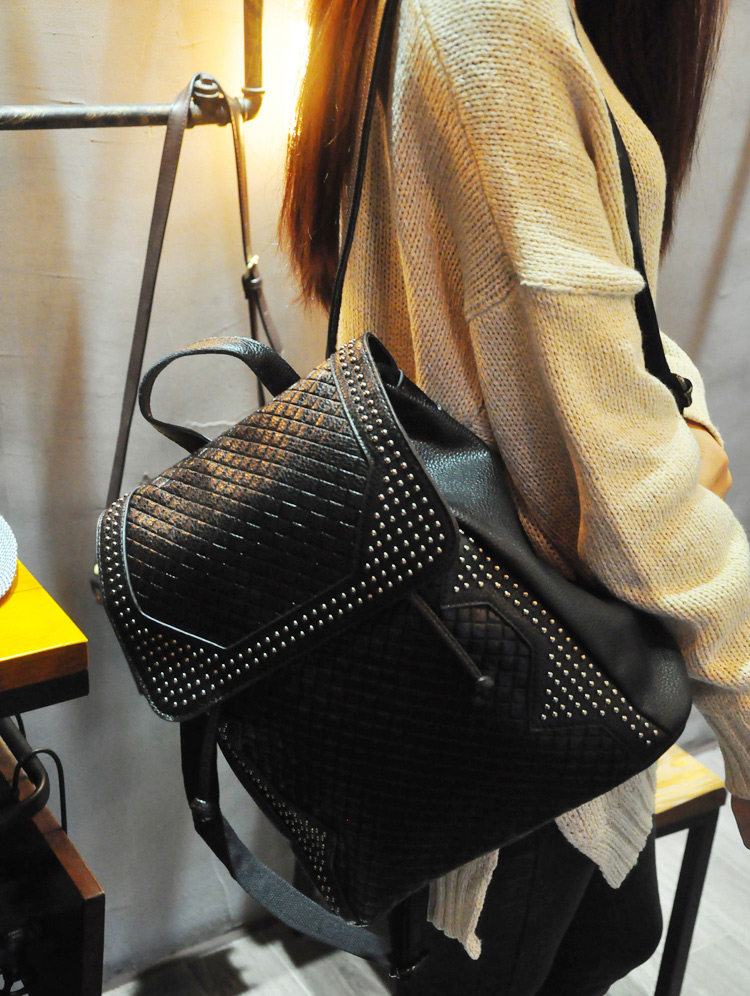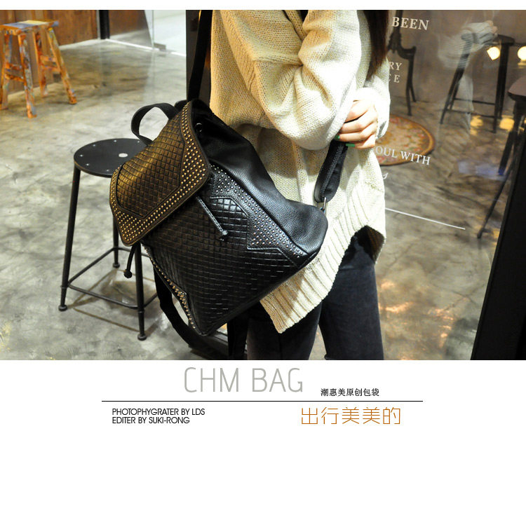 新款 韩版 真皮压花格纹铆钉双肩包 背包 潮包 出行旅游双肩包 女