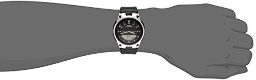 The Casio Forester Sports Thermometer men's watch is the perfect accessory to keep you on time and in style. Featuring a 40-millimeter stainless steel case and resin bezel held securely to the wrist with a black resin band, this quartz-powered timepiece also includes a durable mineral dial window to protect its sleek black face. The dial face is punctuated by silver-tone Arabic numerals at every hour, silver minute indexes, and an easy-to-read day, date, and month display between four and eight o'clock. In addition, this versatile black watch is water resistant to 165 feet.Feature