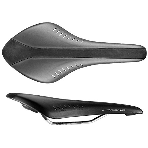 Studio : Fizik Publisher : Fizik Binding : Sports Product Description Fizik Arione K:ium Wing Flex Black Road Saddle with Perforated Metal Blue Stripe features the K:ium rails for strength and a light weight design. The saddle is equipped with wing flex construction to allow free thigh movements, regardless the rider's position, along the saddle. Turn the saddle over and you'll notice several slits cut in the forward edge of the saddles wings. These bend and flex just enough to get out of the way of your thighs as you pedal, but allow the shell to remain firm enough for support and power transfer. This design gives more seating position possibilities with no compromise for more comfort and more performance. Here's another outstanding feature of the Fizik saddles; I.C.S. or Integrated Clip System, which allows you to attach a Fizik Saddle Pa:k or Blin:k red tail light directly to the saddle with no fuss. Match this saddle with Metal Blue bar tape. Specs: Cover - Perforated metal blue microtex; Thigh Glides - Black microtex w/blue wings; Rail - k:ium; Weight - 225 grams; Length - 300mm; Width - 132mm; Scuff Guards - no; ICS - yes. 0