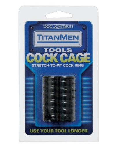ReleaseDate : 2014-11-10 Studio : Doc Johnson Publisher : Doc Johnson Binding : Health and Beauty Product Description Fulfilling the same basic function as a cock ring, but broader and more robust, Titan Men's reliable Cock Cage lets you stay harder longer while adding girth. The sleeve is stretchy, has ribbed texture for enhanced stimulation for your partner, and provides a cozy tightness for your cock. Made of TPE with Doc's antibacterial Sil-A-Gel formula, this Cock Cage is phthalate-free and body-safe. We advise you not to wear it for more than about 20 minutes at a time. Available in Black, Blue, and Clear. 0