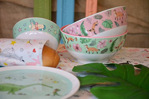 Original illustrated 6" bowl - large melamine bowl with green fox design Each and every one of our melamine dinnerware tells a story. With original and playful hand drawings, we make dinnertime a pleasant and fun experience. Our dinnerware plates and bowls meet the highest standards of durability, giving your family memorable dining experiences for years to come.