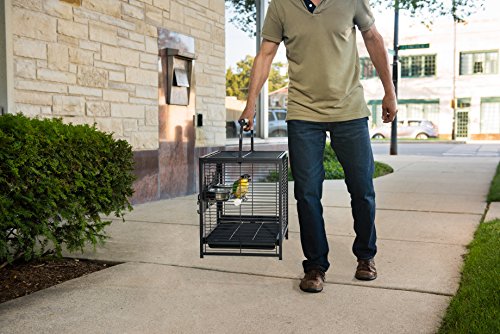 Studio : Prevue Pet Products, Inc. Publisher : Prevue Pet Products, Inc. Binding : Misc. Product Description Prevue Pet Products Anodized Aluminum Travel Carrier for Birds 1307 is ideal for short term use, traveling or emergency situations. Powder coated anodized aluminum is rust resistant, sturdy and lighter than other travel cages on the market. With plenty of interior space for your bird to feel content while remaining secure, this travel cage includes one foot-friendly shapeable rope perch for inside the cage plus a wooden perch play top. Solid cup doors prevent spilling while the lock-in-place cups won’t be dislodged by your bird. Removable tray is held in place by a wind-bell grille tray lock so it won’t slide out during travel but pulls out easily for convenient cleaning. Innovative welded bracket seat belt collars allow you to buckle the carrier into your car for safe and secure automotive travel. Bird proof door lock prevents your small, medium or large sized bird from escaping. Expertly engineered in the USA for easy assembly, no additional tools required. All Prevue cages and carriers undergo independent lab testing to conform to the highest levels of pet safety. Prevue’s Anodized Aluminum Travel Carrier for Birds measures 18 ¾’’ Long, 14 7/8’’ Wide, 18’’ High with ½’’ wire spacing. Height to the top of play top perch/handle is 25’’ 0