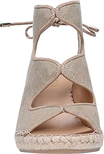 Product DescriptionHigh wedge espadrille sandal with open toe and lacing closure0