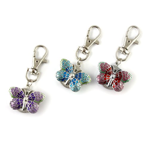 YouyouPifa wholesale 5 Pack Butterfly Pendent Pocket Quartz Key Chain Ring Watch