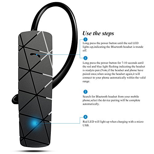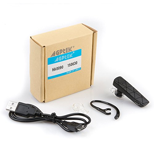 Bluetooth Headset, AGPTEK Handsfree Earpiece Bluetooth Headphone[New Version] for Apple iPhone 6/5s/5c/5, iPhone 4s/4, Samsung Galaxy S5/S4/S3, LG, PC Laptop, and Other Bluetooth Device - Black