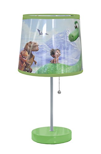 -. Binding : Toy -. Brand : Disney -. Color : Green -. EAN : 0784857670585 -. Feature : Perfect for any good dinosaur fan / Easy to use pull chain / No assembly required - ready to light up any room! / 40 Watt bulb required (not included) / 8 inch diameter, 20 inch tall -. Label : Idea Nuova - LA -. Manufacturer : Idea Nuova - LA -. Model : WK319689 -. MPN : WK319689 -. PackageQuantity : 1 -. PartNumber : WK319689 -. ProductGroup : Toy -. ProductTypeName : TOYS_AND_GAMES -. Publisher : Idea Nuova - LA -. Studio : Idea Nuova - LA -. Title : Disney Good Dinosaur Table Lamp Green -. UPC : 784857670585 -. Warranty : No Warranty